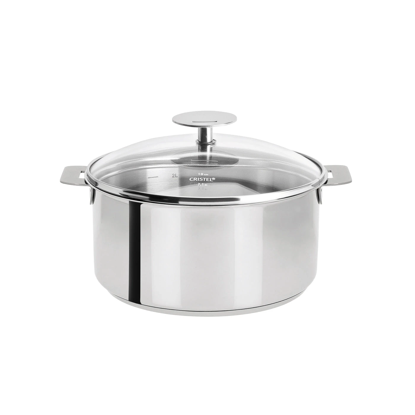 18/10 stainless saucepan, mirror finish, removable handle, from the Removable Mutine collection. Mutine 2 Qt Saucepan w/Lid is a must for your kitchen. The removable-handle concept enables perfect stacking of Cristel stock pots and saucepans, for significant space savings in your cupboards and dishwasher. Thanks to the efficiency of Cristel induction-compatible heat-diffusing base, Removable Mutine saucepans can be used in any kitchen and will be of valuable help for the preparation of your dishes. The practical removable-handle system lets you turn your stainless saucepan into a stock pot by replacing the handle with the grips. Mutine saucepans are made of 18/10 stainless steel. They preserve the taste of food and are easy to clean after use. Requires removable handles or grips – Sold Separately. – C18PK – 1 – W10