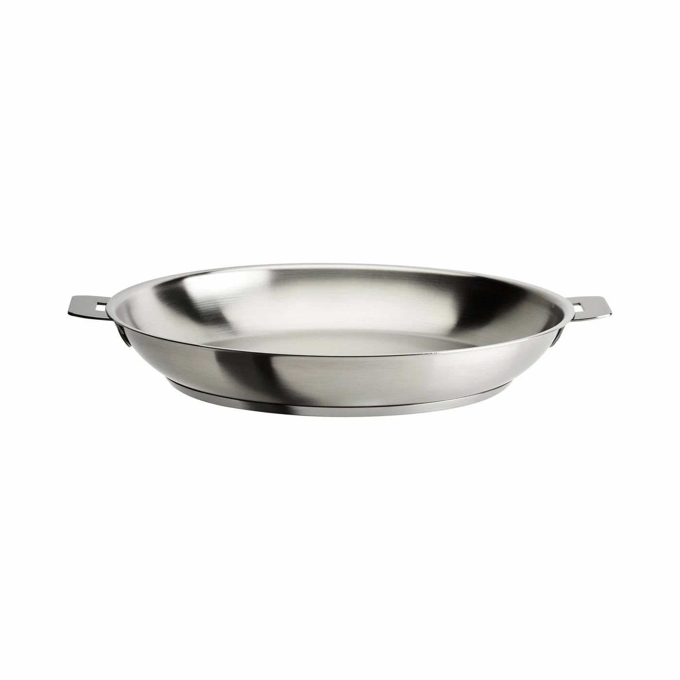 18/10 stainless frying pan, brushed finish, Removable Strate. Strate stainless frying pans are ideal for searing meat, even without the addition of water or oil, thanks to the quality of their heat-diffusing base. When its handle is removed, the Cristel stainless frying pan can be used as an oven dish, to make a vegetable tian for example. For cooking fish, eggs or potatoes, the Strate non-stick frying pan is the most suitable. Strate frying pans are made of 18/10 stainless steel. They preserve the taste of food and are easy to clean after use. Requires a removable handle or grips. – P22QL – 2 – W29