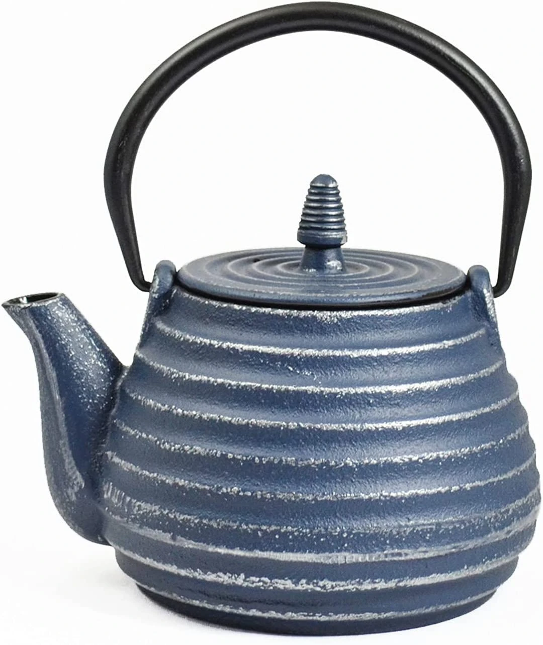 Frieling Teapot Cast Iron TebieClassic With Stainless Steel Stainer 27 Fl. Oz -Blue/Silver