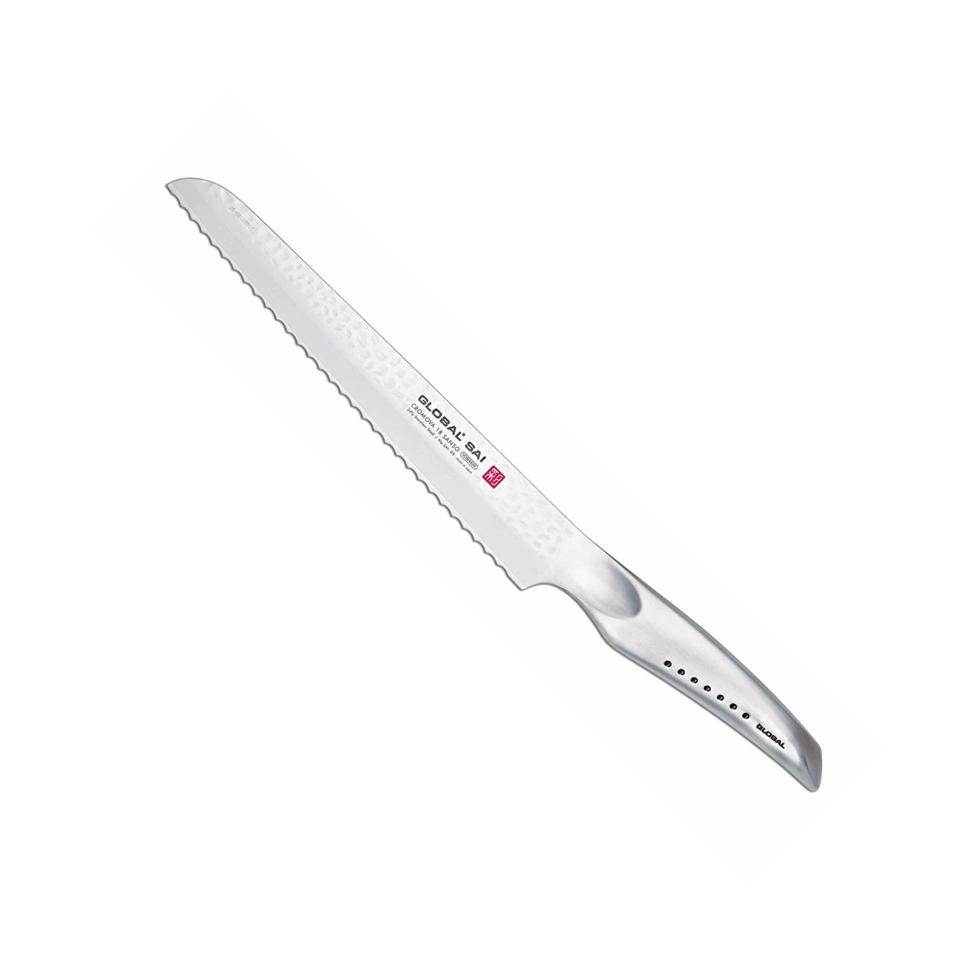 A large serrated knife that is great for slicing foods with thick crusts or rinds like artisan breads and melons/gourds. It also cuts through soft bread without crushing it.