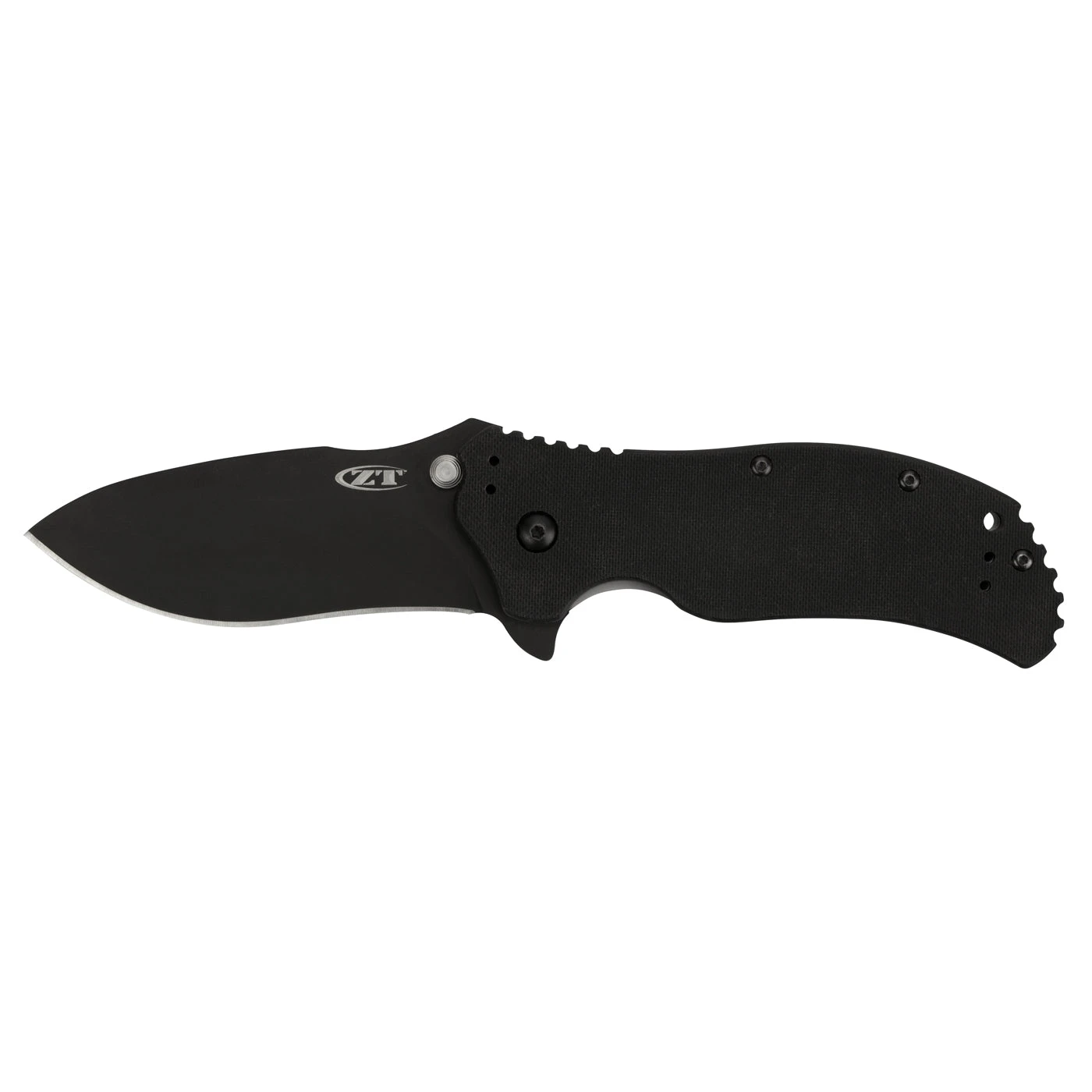 Slightly smaller. Slightly lighter. Just as aggressive. The 0350 is smaller and weighs less than some of our larger ZT models. Yet it packs a lot of features into a size that some users prefer, especially for every day carry. Like its larger counterpart, the 0350 features the patented SpeedSafe® assisted opening system. Deploy the blade quickly and easily, even in gloves, using the ambidextrous flipper. The ZT 0350’s blade is S30V stainless steel with non-reflective black Tungsten DLC (Diamond-Like Carbon) coating. S30V steel is extremely durable, corrosion resistant, and wear resistant. In addition to providing a non-reflective surface, the black Tungsten DLC coating offers additional blade hardness and reduces friction. This high-performance S30V blade is paired with textured black G-10 scales for a secure grip and excellent mechanical strength even under the roughest conditions. The scales are flat rather than 3D machined like those of the 0300. A locking liner secures the blade during use. The 0350 also includes ZT’s Quad-mount system for complete versatility. Mount the pocketclip in any of four ways: tip-up, tip-down, on the left side, or the right. There’s a pre-drilled lanyard hole for users who prefer to attach a lanyard.