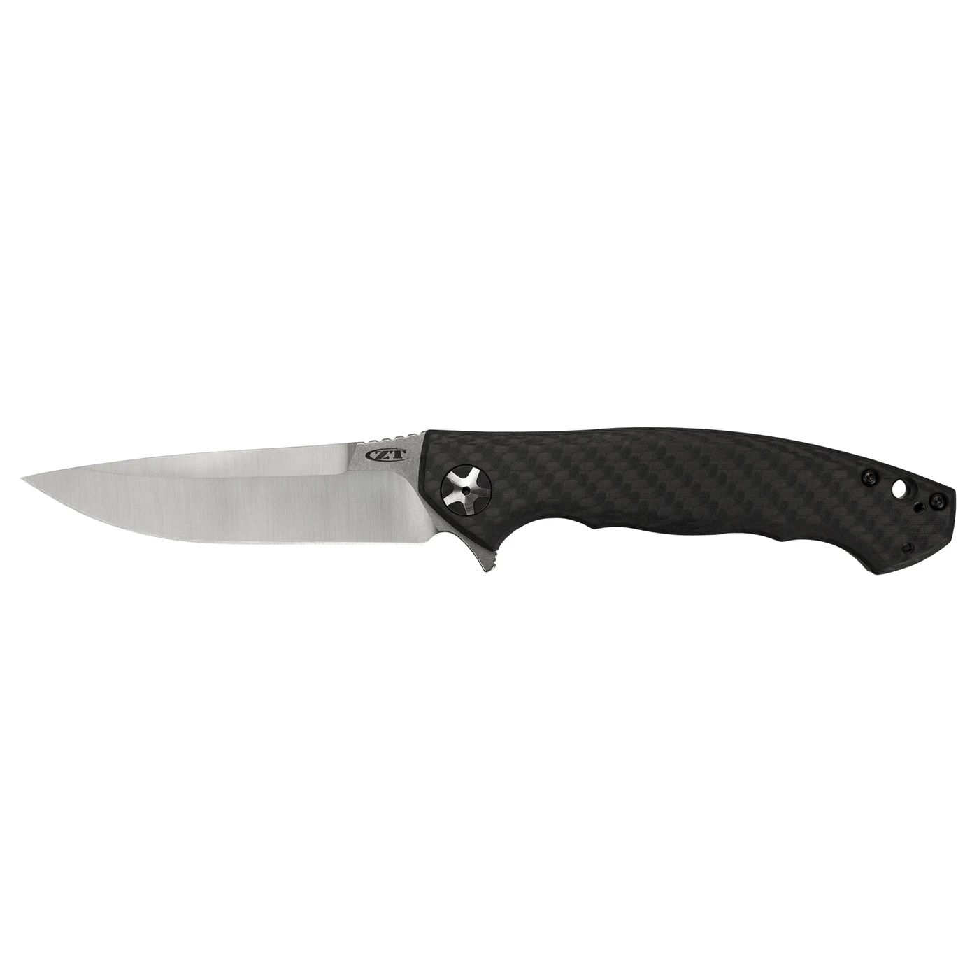 The original Zero Tolerance 0454 was an award-winning collaboration between ZT and custom knife designer Dmitry Sinkevich. But it was also a very Limited Edition knife. To make this amazing knife more readily available, ZT has created a new-for-2015 version based on the original’s streamlined form and high-performance function. The 0452CF is the same size as the original 0454, but with a carbon fiber front scale and S35VN dual-finished blade. S35VN sharpens to a razor edge, holds it, and can be resharpened easily. The 0452CF opens as smooth as butter with the KVT ball-bearing opening system and built-in flipper. A titanium frame lock with hardened steel lockbar insert ensures solid lock up. As a final touch of class, the 0452CF features handsome 5-spoke pivot hardware. From office to outdoors, the 0452CF is ready to go wherever you’re ready to take it.