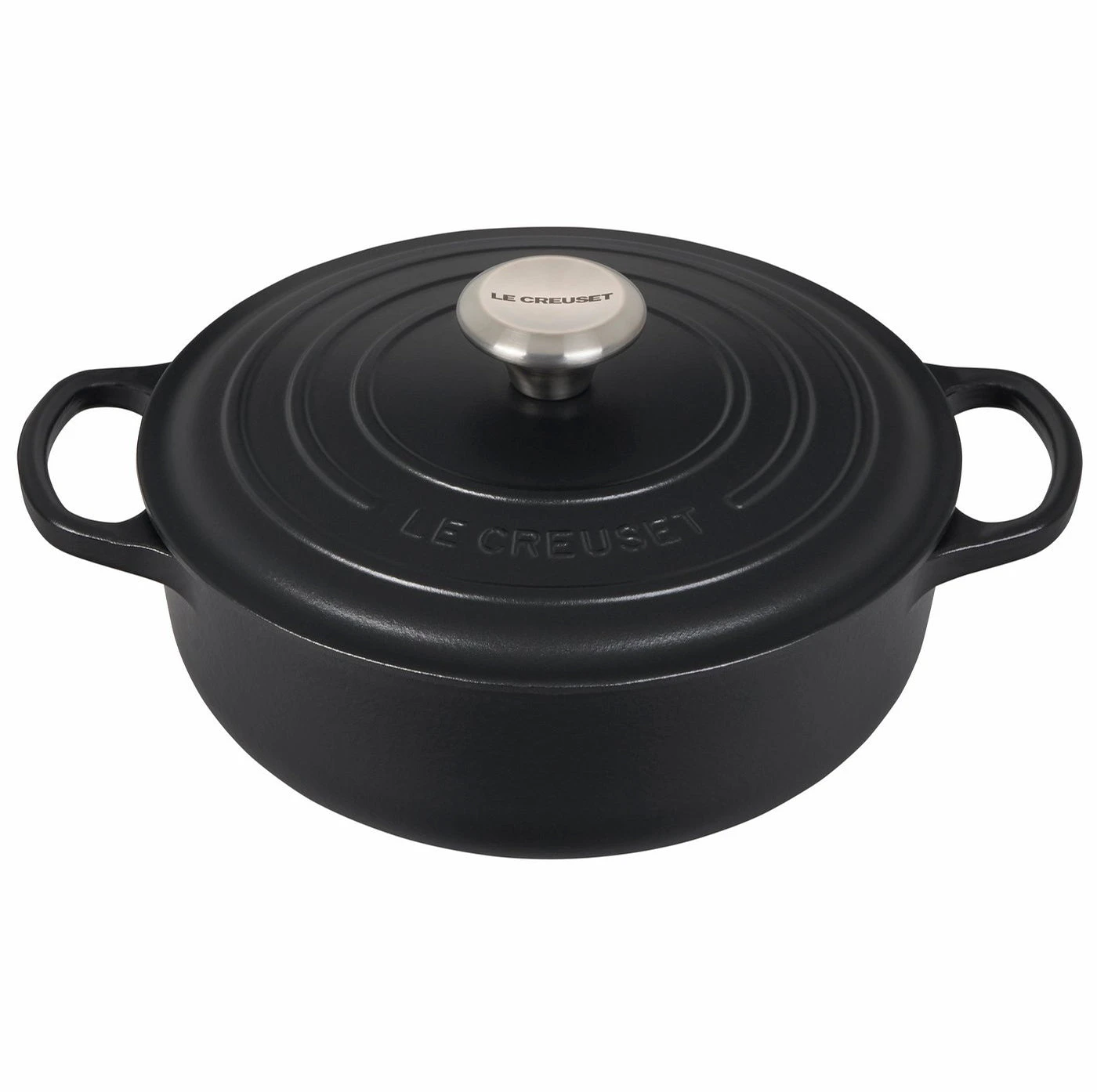 A sauteuse pan has sloping sides and a large surface area ideal for simmering and reduction. It’s a versatile shape that also works for searing, sauteing, braising and frying.