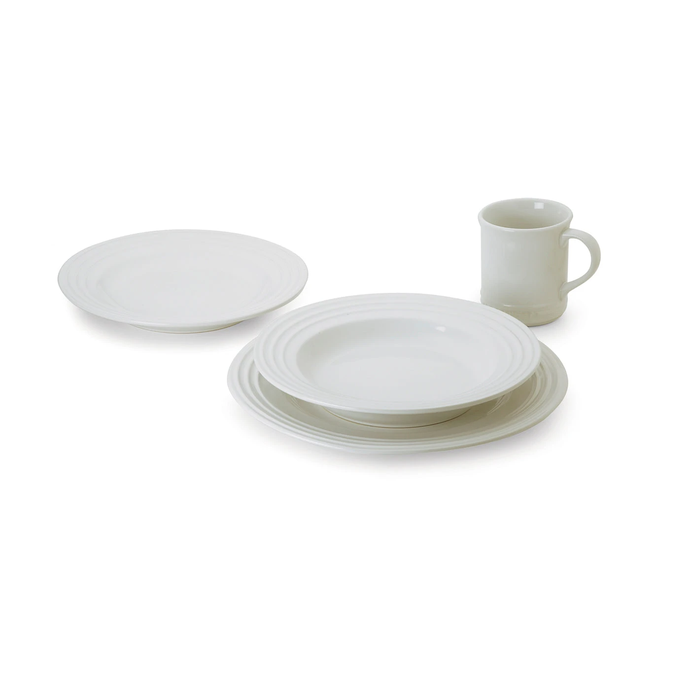 Each piece of Le Creuset dinnerware is crafted in the same careful process as all Le Creuset stoneware — with a colorful, durable exterior enamel that matches other stoneware flawlessly while protecting from utensil marks and scratches. Every plate, bowl and mug is designed to complement any collection of stoneware, and is finished with Le Creuset’s signature three-ring accent along the exterior.