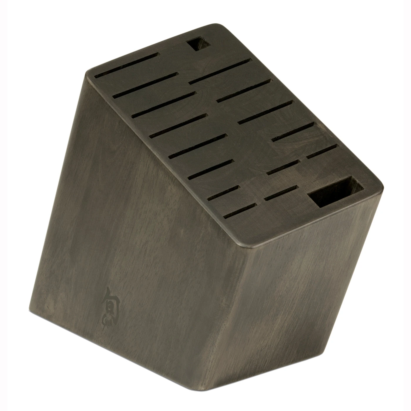 The Kanso 17-slot block offers room for your expanding Kanso collection. This solid wood block is finished to match Kanso’s tagayasan (or wenge) handle and works beautifully with other Shun styles as well. This handsome block features 17 slots, including one to accommodate a honing steel and one for a handy pair of kitchen shears.