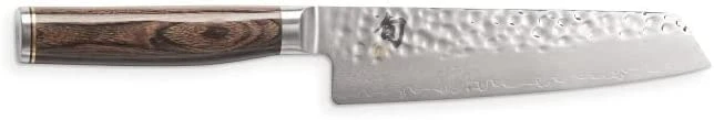 The ultra-versatile Shun Premier Master Utility combines the nimbleness of a utility knife with the do-it-all capabilities of a chef’s knife. The blade is slightly longer and significantly wider, so you can easily accomplish a wide range of food preparation tasks while enjoying the ease of use and agility of a compact knife. Extra width at the heel and a slightly curved belly enables rocking cuts to easily mince herbs and spices. A larger handle gives you a secure, comfortable, and confident grip as you work. The Shun Premier Master Utility’s downturned tip (similar to a kiritsuke) is extra durable. Slice, dice, shred, or portion; you can do it all with this one very beautiful, very functional, kitchen knife. – TDM0782 – 26 – B119-3