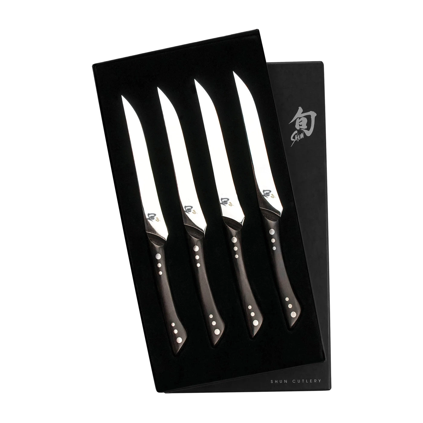 Shun named its Shima Steak Knife Set for Tokyo’s famous Shima Steakhouse, where diners from all over the world enjoy some of the world’s finest beef. Inspired by Shima, Shun created a steak knife that can make even the world’s best steak taste better. Here’s why the right steak knife makes a difference: Much of the delicious flavor in steak is contained in its juices, which are held inside by the fibers of the meat. Cutting with Shima’s razor-sharp 16° edge means that far fewer meat fibers are cut with each slice, so that more of the juices and more of the flavor remain exactly where they belong—in the steak. Shima’s long five-inch blade with its slight recurve is designed for easy, one-pass slicing. Place Shima’s blade flat against any surface and you’ll see that the blade only touches the surface near the tip and at the heel. The rest of the blade is curved slightly inward. This shape is designed to ensure a smooth slice, whether pushing the blade forward or pulling it back. If the blade were flat, it would simply crush the steak, forcing you to “saw” through the meat. With the recurve, you start the slice at the front of the blade and push forward or pull back through the entire length of the blade. The edge contacts the meat at a slight angle and has a smaller point of initial contact, making it much easier to slice the food—without the resistance and “crushing” experienced with a blade that doesn’t have the recurve. The Shima’s recurved blade is also useful when cutting on a plate that has a lip. The shape enables the user to continue their slice all the way to the edge of the plate. Shima’s full-tang construction makes it an exceptionally well-balanced knife. The handle is slim, contoured to fit the hand, and tapers as it nears the blade. This enables a slight pinch grip for comfortable control. The slim, flat handle provides lateral stability, ensuring that the knife won’t rotate or twist in your hand. The combination of the slim handle and gentle contouring provides easy, nearly effortless control while dining. The PakkaWood handle scales, made of genuine hardwood and impregnated with resin, are beautiful, water resistant, and won’t harbor bacteria. As a finishing touch, Shima handles are decorated with inlaid steel rondels.