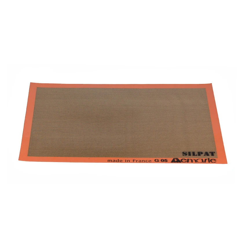 Silpat Non-Stick Baking Mats are designed for every type of oven. From savory to pastry baking, nothing sticks to Silpat. It is reusable for thousands of uses and provides even heat transfer to baked goods. Use your Silpat everytime you bake! Dimensions of the Liner: 16 1/2″ x 24 1/2″ fits a 18″ x 26″ pan. Made in France. – AE620420-12 – 136 – C37/C36
