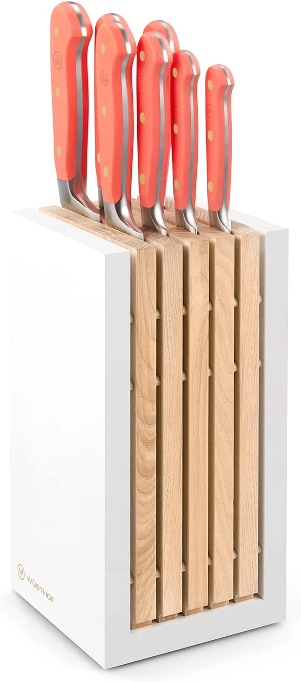 Wusthof Classic Coral Peach – 8 Pc. Knife Block Set, White- Personalized Engraving Available
